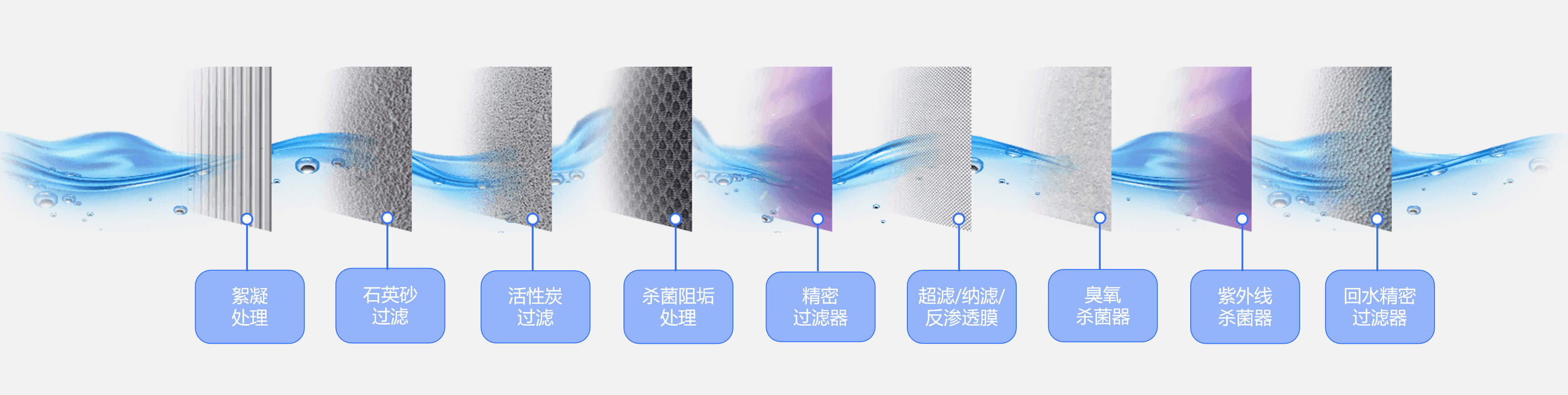 经十三道科学制水流程,保留对人体有益的微量元素和矿物质,如钙、镁、锌、硒等,处理去除大颗粒杂质、细菌、病毒等有害物质,采用食品级管材确保水质稳定输送,实现饮用水无污染直接饮用